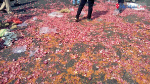 विधानभवन - तूरडाळ आणि कांद्याला हमी भाव मिळावा यासाठी स्वाभिमानी शेतकरी संघटनेचे अध्यक्ष राजू शेट्टी आणि त्यांच्या कार्यकर्त्यांनी मंगळवारी विधानभवनाच्या गेटवरच आंदोलन केले. तर काही कार्यकर्त्यांनी सदाभाऊ खोत यांच्या कारवर कांदे फेकले.