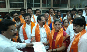 मुंबई - मुंबईच्या महापौर पदासाठी शिवसेनेच्या वतीने प्रा. विश्वनाथ महाडेश्वर यांचे नाव जाहीर झाले आहे. महापालिकेत सध्या तरी शिवसेना पक्ष हा मोठा असून भाजपाला फोडाफोडीत यश न मिळाल्यास महाडेश्वर यांचा महापौरपदी बसण्याचा मार्ग सुकर होणार आहे. शनिवारी दुपारी महापालिका चिटणीस कार्यालयात जाऊन त्यांनी महापौर पदाचा उमेदवारी अर्ज दाखल केला.