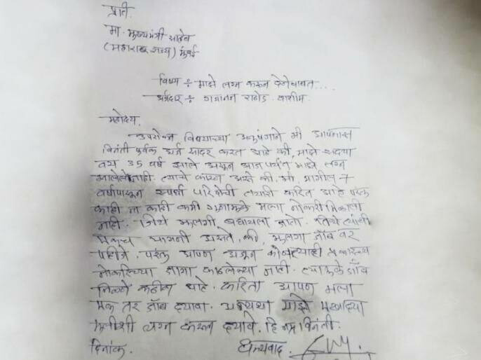 हाच मुद्दा पकडून वाशीम येथील गजानन राठोड या ३५ वर्षांच्या तरूणाने थेट मुख्यमंत्री उद्धव ठाकरे यांनाच गळ घातली आहे. आपल्या पत्रात गजानन याने लिहिलं आहे की,