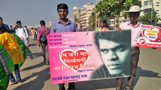 'मला नको बंगला गाडी, मज हवा निर्व्यसनीच गडी' असं बोलण्याची सध्या मुलींवर वेळ आलीय. कारण सध्या व्यसन करणाऱ्या तरुण-तरुणींची संख्या वाढते आहे. हल्लीची मुलं मित्रांच्या संगतीत सहज व्यसनाच्या आहारी जातात. याच पार्श्वभूमीवर 'व्हेलेंटाईन डे'च्या निमित्ताने 'महाराष्ट्र राज्य नशाबंदी मंडळ'च्या वतीने व्यसनमुक्तीसाठी दरवर्षी एक उपक्रम राबवला जातो. यंदा ही असाच उपक्रम व्यसनमुक्तीसाठी मुंबईच्या नरिमन पॉईंट परिसरात राबवण्यात आला.