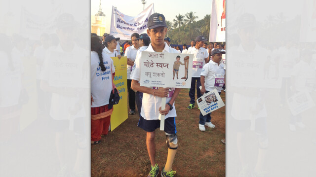 टाटा मुंबई मॅरेथाॅनमध्ये रत्ना निधीच्या सहकार्याने 'मुंबई दिव्यांगमुक्त करा' असा संदेश देण्यात अाला. राजू करे, अाशिष झा, विश्वनाथन गुरव अाणि महेश कांबळे हे चौघेही अपघातात जखमी झाले होते. त्या चौघांनी जयपूर फुट घालून मुंबई मॅरेथाॅनमध्ये भाग घेतला.