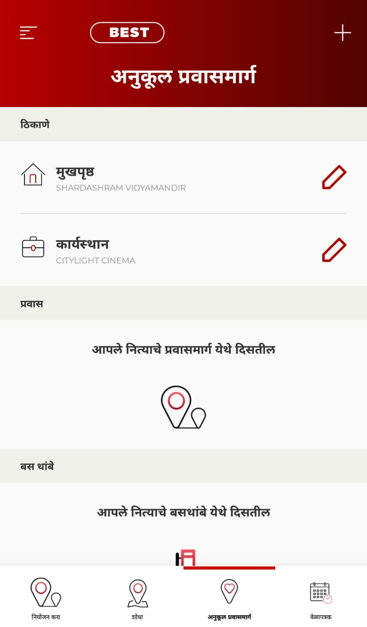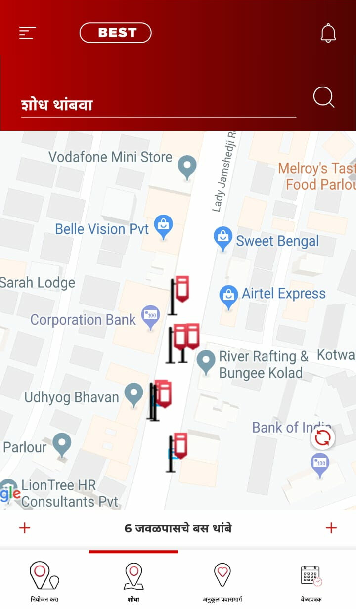 'शोध' या पर्यायाच्या माध्यमातून प्रवाशांना बस थांब्यांची माहिती मिळणार आहे. तसंच, या पर्यायामध्ये जवळपासचे ६ बस थांबे दर्शविण्यात येतात.