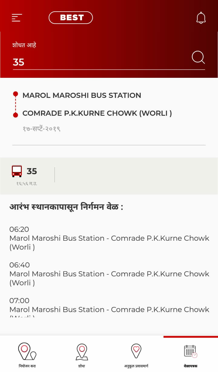 'वेळापत्रक' या पर्यायाच्या माध्यमातून प्रवाशांना बसचं वेळापत्रक समजण्यात मदत होणार आहे. कोणती बस किती वाजता सुटणार याबाबत माहिती उपलब्ध होणार आहे.