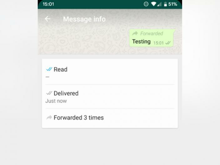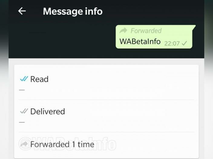 व्हॉट्सअॅपनं आणलेल्या नव्या फिचरमध्ये 'Forwarding Info' आणि 'Frequently Forwarded' यांचा समावेश करण्यात आला आहे. यामुळे एखादा मेसेज किती वेळा फॉरवर्ड करण्यात आला आहे याची माहिती मिळणार आहे.
