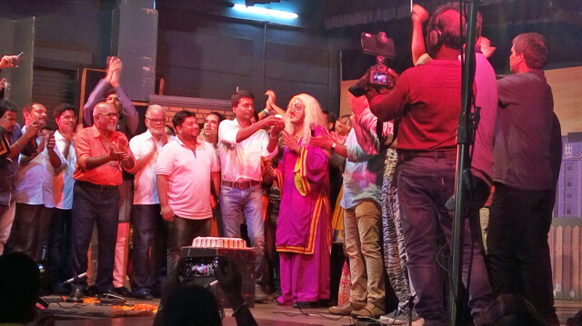 याप्रसंगी चिन्मयने संपूर्ण टीमच्या वतीने वैभवला बोलण्याची संधी दिली. वैभवने सर्वप्रथम रंगमंचावर डोकं टेकवून सर्व रसिकांना साष्टांग नमस्कार केला. त्यानंतर आपल्या भावना व्यक्त करताना तो रसिकांना उद्देशून म्हणाला की, हे यश तुमच्यामुळे मिळालं आहे. त्यामुळेच तुम्हाला हा साष्टांग नमस्कार केला. तुम्ही पहिल्या प्रयोगापासूनच या नाटकाला गर्दी केलीच, पण भरभरून दादही दिली. इतकंच नव्हे तर इतर रसिकांनाही हे नाटक पाहण्यासाठी प्रवृत्तही केलंत. आज जे सलग ५ प्रयोग सादर झाले ते केवळ तुमची साथ आणि शुभेच्छांमुळेच. यापुढेही अशीच साथ राहू द्या अशी विनंतीही वैभवने केली.