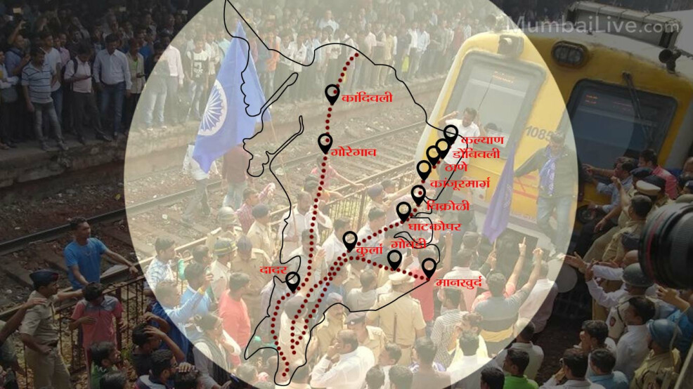 ठाणे, डोंबिवली, कल्याण, कांजूरमार्ग, घाटकोपर, विक्रोळी, कुर्ला, मानखुर्द, गोवंडी, दादर, गोरेगाव, कांदिवली इ. स्थानकांमध्ये आंदोलन झाल्याने रेल्वे वाहतुकीवर मोठ्या प्रमाणात परिणाम झाला. तर, हार्बर मार्गावरील गोवंडी आणि जुईनगरमध्ये रेलरोको केल्याने वाहतूक पूर्णपणे ठप्प झाली होती. आंदोलकांनी रेल ट्रॅकवर उतरुन आंदोलन केल्यामुळे वाहतूक मोठ्या विस्कळीत झाली. सायंकाळनंतर हळूहळू मध्य आणि हार्बर मार्ग पूर्वपदावर यायला लागली.