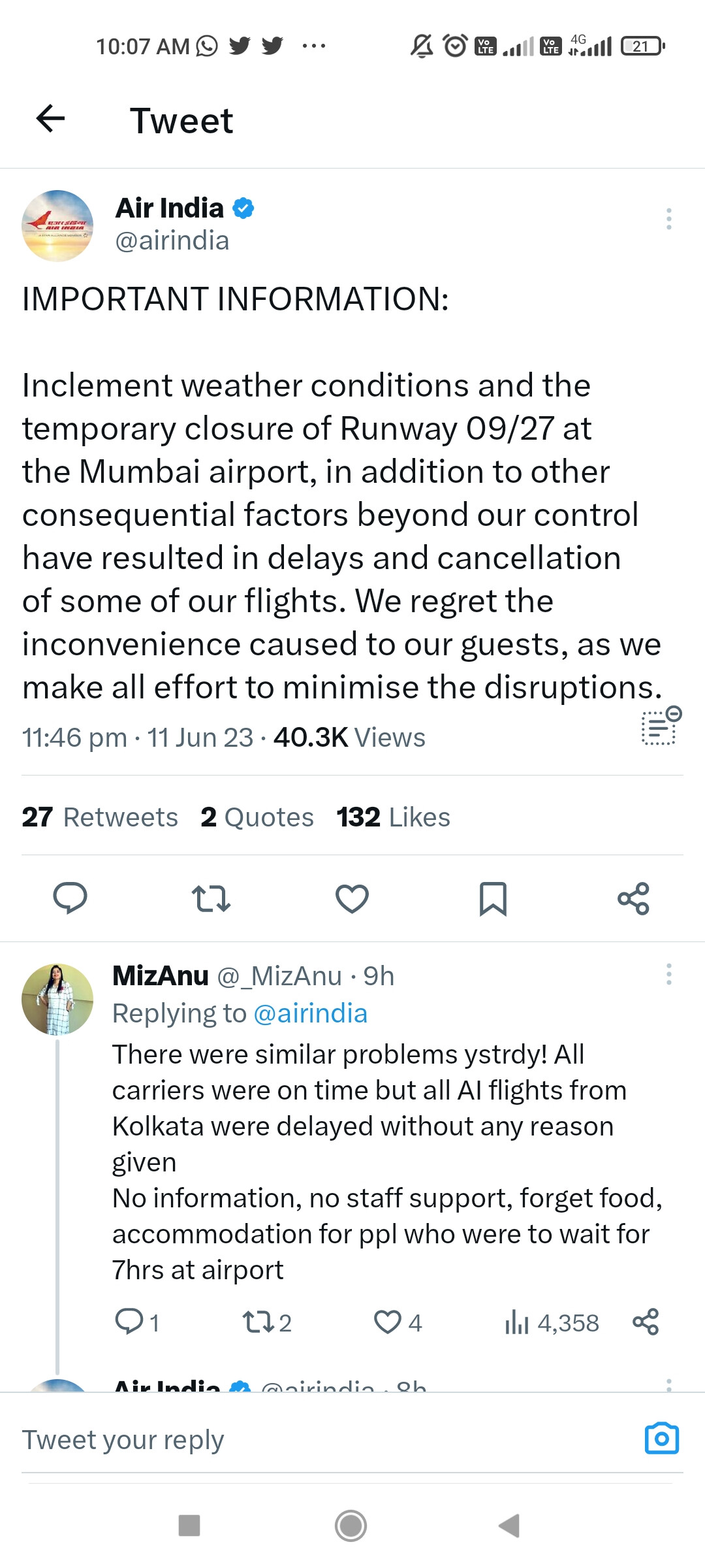 अहवालानुसार, सहा फ्लाइट्स देखील फिरवल्या आहेत. MH-194, AI-638, UK-652, AI-582, SL-218 (थाई लायन एअर), 6E-5038 ही उड्डाणे फिरवण्यात आली आहेत.