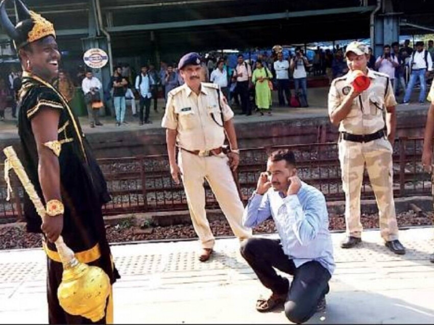हातात गढा... अंगावर काळे वस्त्र... डोक्याला शिंग... हा यमराज आहे हे त्याला पाहून कोणालाही कळून येईल. पण तो रेल्वे स्टेशवर काय करतोय? तो आपल्यालाच दिसतोय की सर्वांना? असा प्रश्न प्रत्येकाला पडावा. तो आलाय म्हणजे कुणाला तरी घेऊन जाणार असच सर्वांना वाटत होतं. तो मी तर नाही? अशी शंकाही प्रत्येकाच्या मनात डोकावत होती. पण तो आला आणि रेल्वेरूळ पार करणाऱ्या एकाला उचलून प्लॅटफॉर्मवर घेऊन आला. यमराजला पाहून टेंशनमध्ये येणाऱ्या प्रवाशांच्या चेहऱ्यावर हसू आलं. तेव्हा सर्व प्रकार प्रवाशांना कळाला आणि त्यांचा जीवात जीव आला.